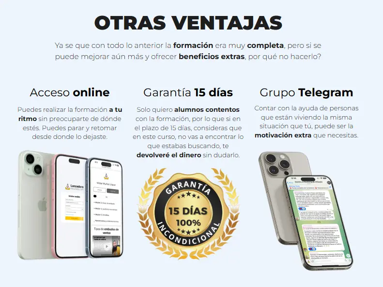 | Soporte real: comunidad privada en Telegram y contacto directo con el creador. | No es gratis; hay que invertir (aunque recuperable si aplicas el método). |